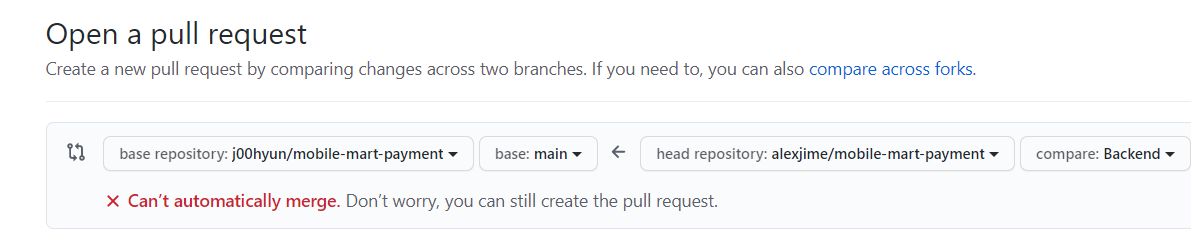 오늘 pull request를 날리려다가 다음과 같은 오류를 목격했다.
