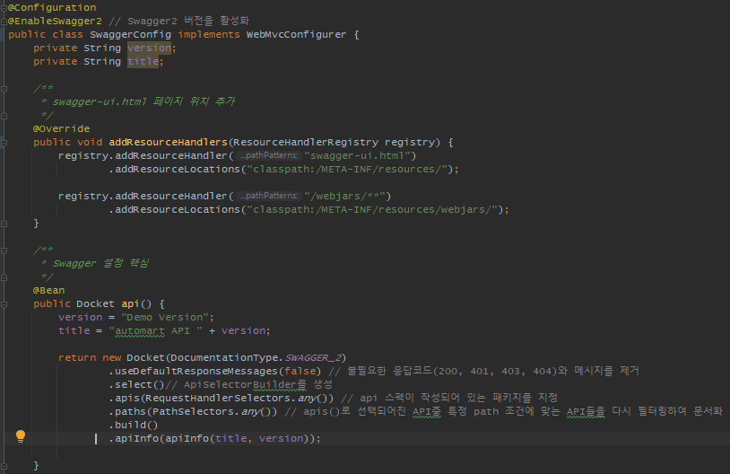 2의 경우 swagger-ui와 swagger2 버전을 2.9.2 버전으로 다운그레이드 시킨다.