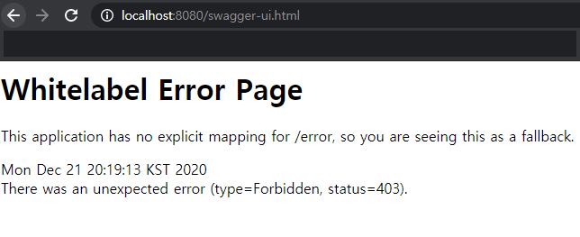 에러 : localhost:8080/swagger-ui.html 접속시 Whitelabel Error Page가 나타나는 문제